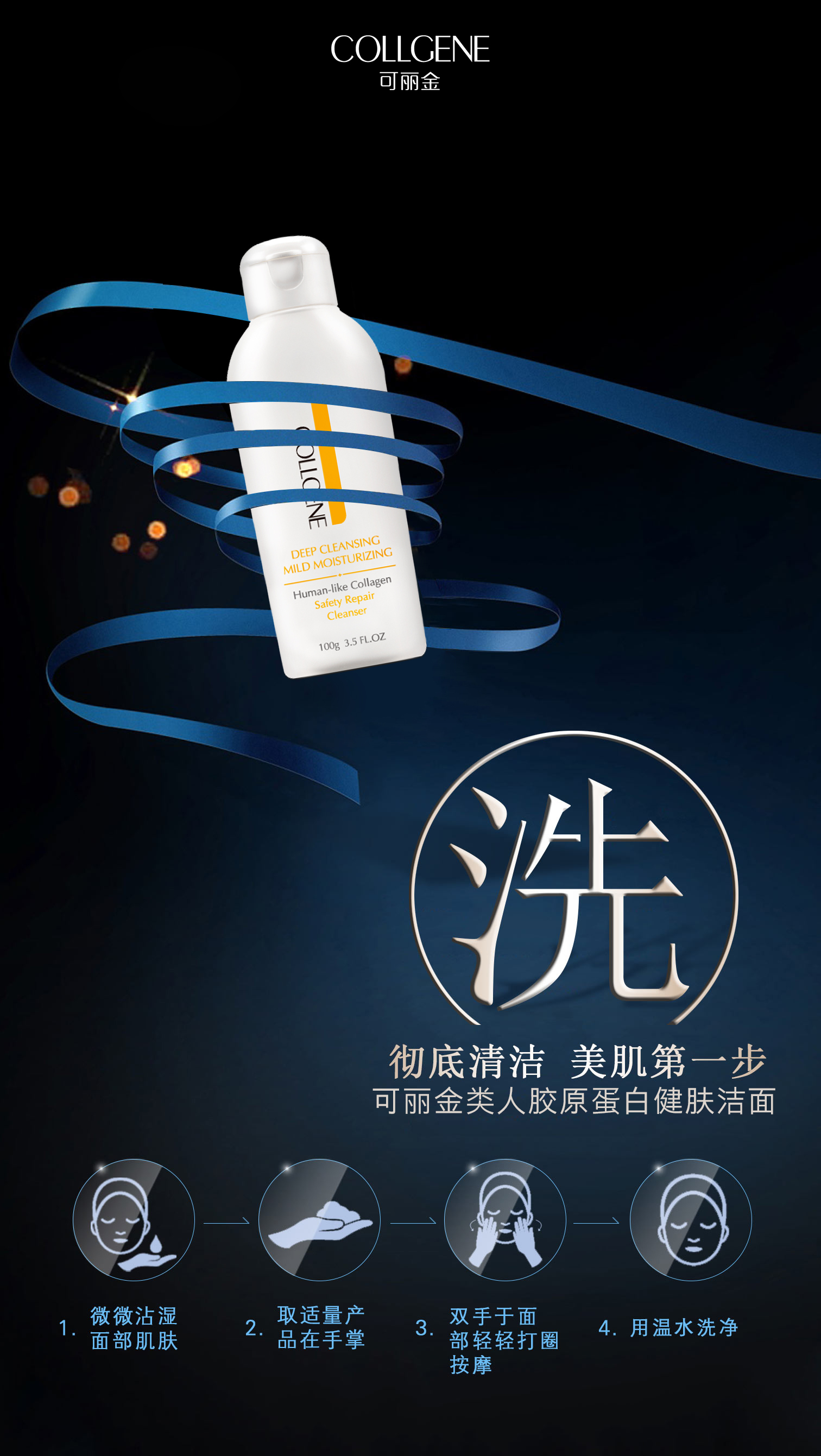 可丽金类人胶原蛋白健肤洁面乳,温和乳状质地,泡沫丰富细腻~,清洁不刺激,修复屏障预防敏感,洗出健康肌肤。