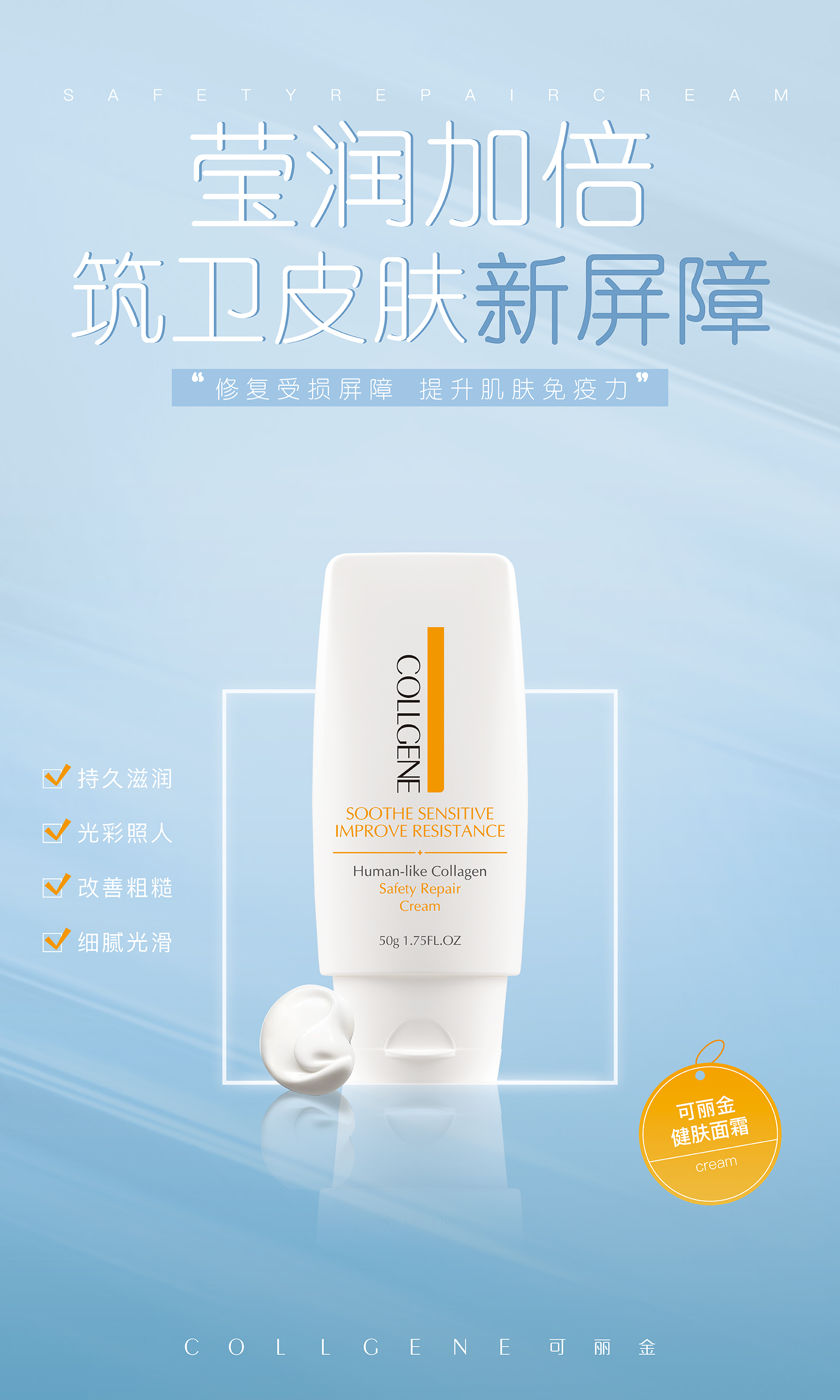 秋季干燥,肌肤缺水,补水重要,但锁水更重要。 【可丽金类人胶原蛋白健肤面霜】,为肌肤筑起屏障,改善粗糙肌肤,持久锁住水分,提高肌肤免疫力,你的面霜用对了吗?