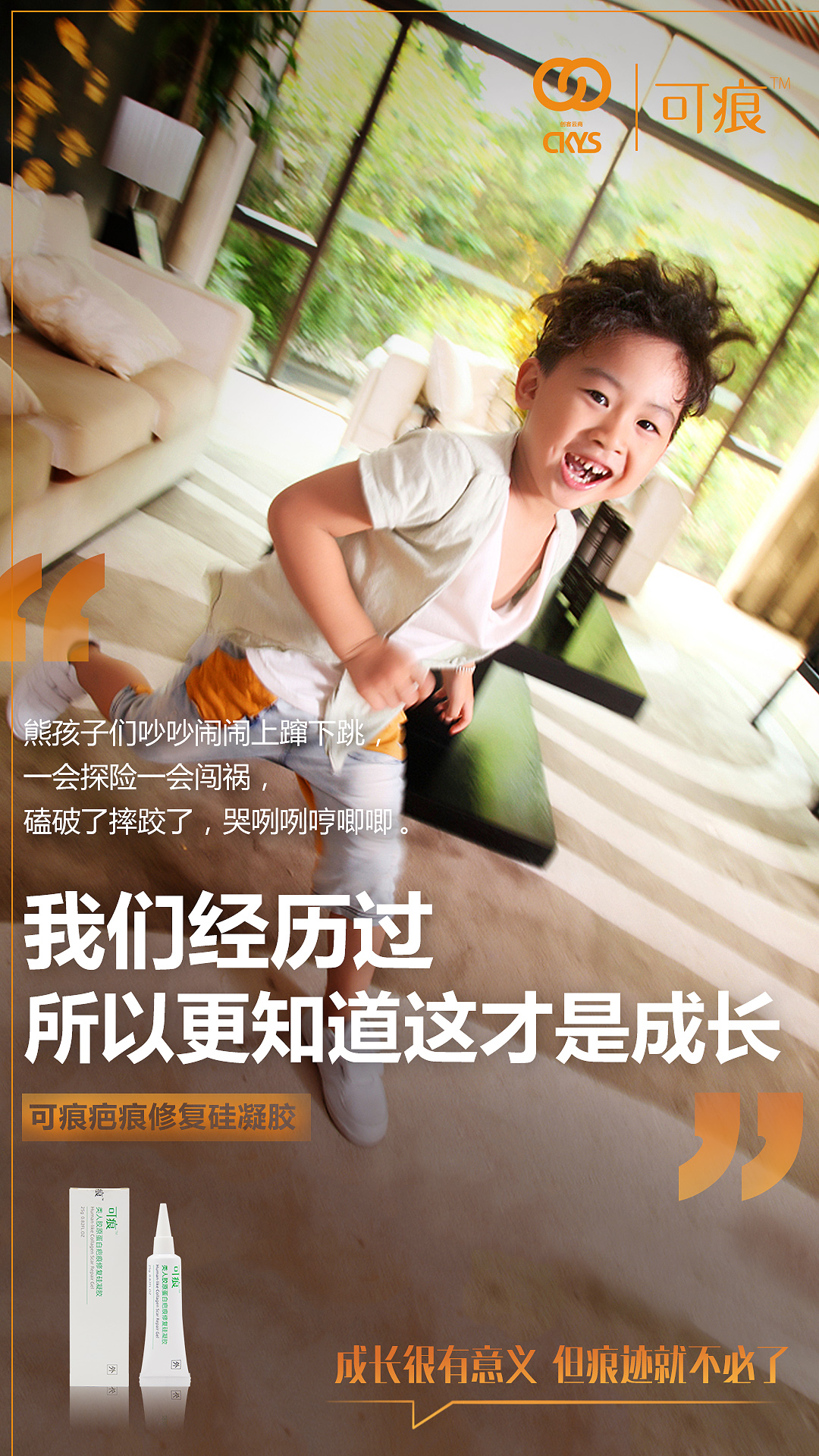 生性好动的宝宝们,有哪一个不调皮?但磕磕碰碰、摔了伤了,留下疤痕就不好了~ 疤痕咱不怕,有祛疤小能手【可痕】,预防疤痕形成,修复各类疤痕,让成长的岁月只留下完美