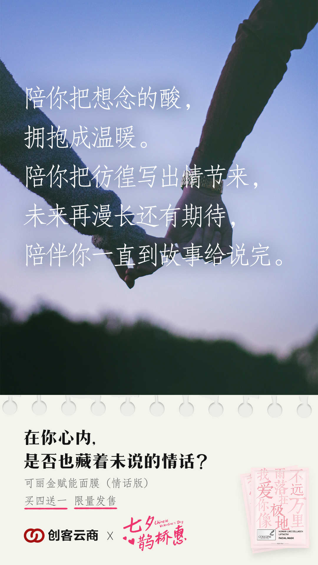 七夕想对你说的话,都藏在盒子里。 【鹊桥惠】活动即将开始,赋能面膜(情话限量版)买4送1,承包你的美,2018.8.9下午2点准时上架 #可丽金# #创客云商# #类人胶原蛋白# #小魔女皮肤管理中心#