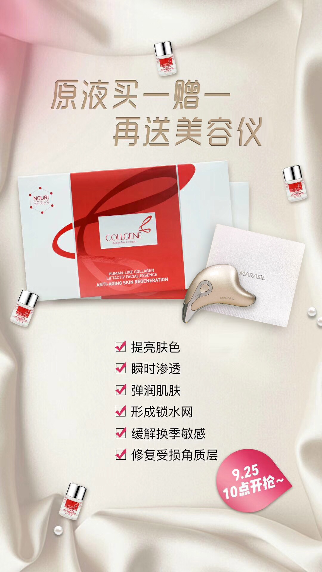 9月庆典活动收尾“猛料”,欢庆美好双节: 留住美好年华,与时光为“敌”,你也可以有资本 赋能珍萃原液买1盒送1盒再送美容仪 9.25号10点限量开售 #可丽金# #创客云商# #类人胶原蛋白# #小魔女皮肤管 ...