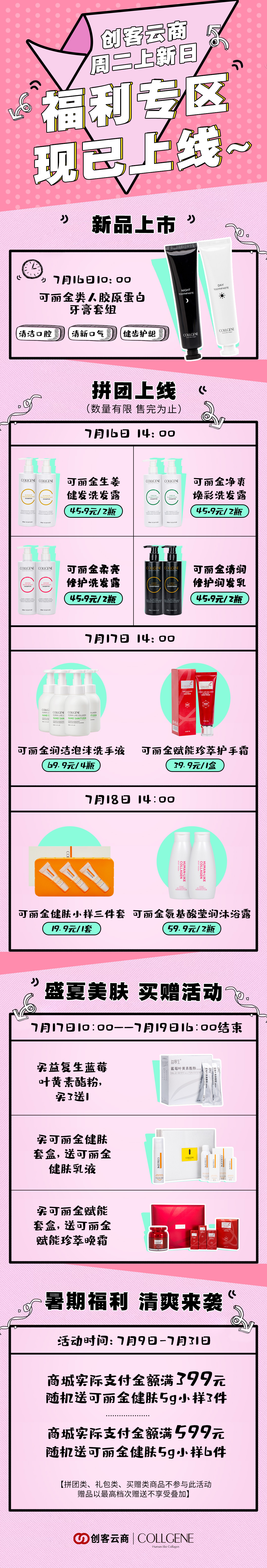 盛夏美肤季|活动多多,等你来 创客云商7月优惠指南都在这里了,快来带走心仪的产品吧! #可丽金# #创客云商# #类人胶原蛋白# #小魔女皮肤管理中心#