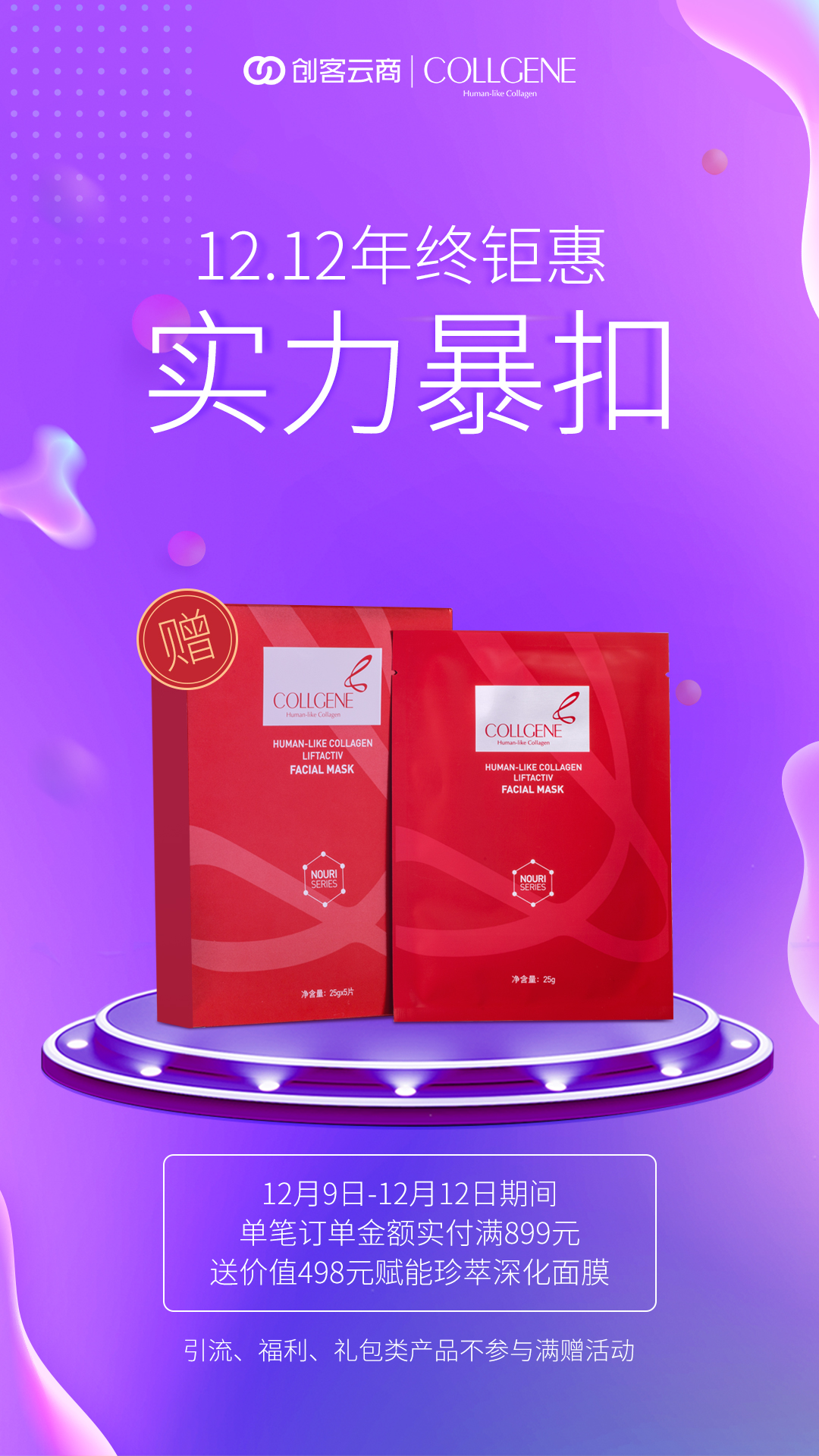 双12钜惠来袭,狂欢不止 12月9日-12月12日单笔订单实付金额满899即送赋能珍萃深化面膜↓↓↓ 推荐搭配:可丽金夜间养护套组 ¥ 1024.8 ①赋能明眸霜15g ②赋能眼膜5g*5袋 ③赋能晚霜48g ④赋能精华露30ml ...